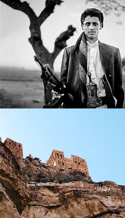 Schibam liegt am Fuße eines gigantischen Tafelberges. Ein Fremder ist hier noch so fremd, dass er die Kinder im Dorf entweder magisch anzieht oder sie verscheucht. Ich laufe durch ein Stadttor mit Inschriftensteinen, passiere eine Moschee und erreiche oberhalb des Ortes den alten Eselspfad, der auf den Gipfel des Berges, nach Kawkaban, führt. In der Ferne sind kegelartige Felsformationen zu erkennen. Schwarze Ziegen klettern umher. Und ganz oben steht ein Kastell. Die Macbeth-Burg? Krähen kreisen vor den Felsen wie Shakespeares Boten des Schreckens. Plötzlich fallen Schüsse. Im Kugelhagel der Kalaschnikows lasse ich mich zu Boden sinken. Und während ich so blöd daliege, entdecke ich im Tal zwei Jungs, die auf die Vögel ballern. Eine Kalaschnikow trägt man im Nordjemen wie in New York die Prada-Tasche. Auf 18 Millionen Jemeniten kommen 64 Millionen Gewehre und Pistolen.